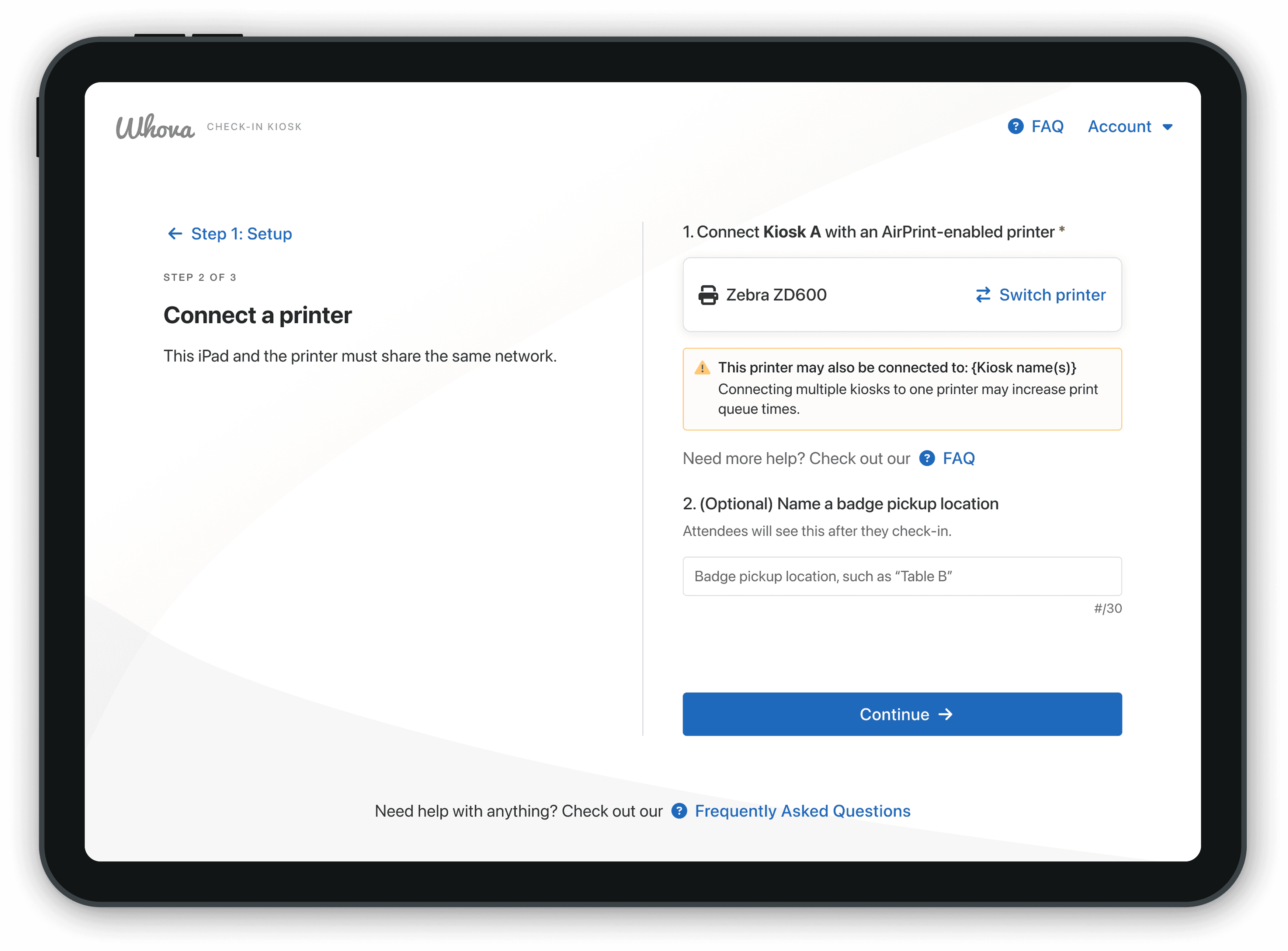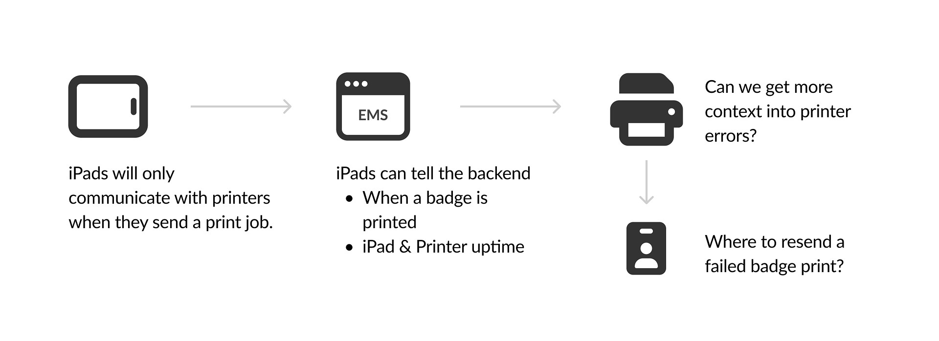 Organizers need to source iPads & printers, install an app and configure external settings for both.
