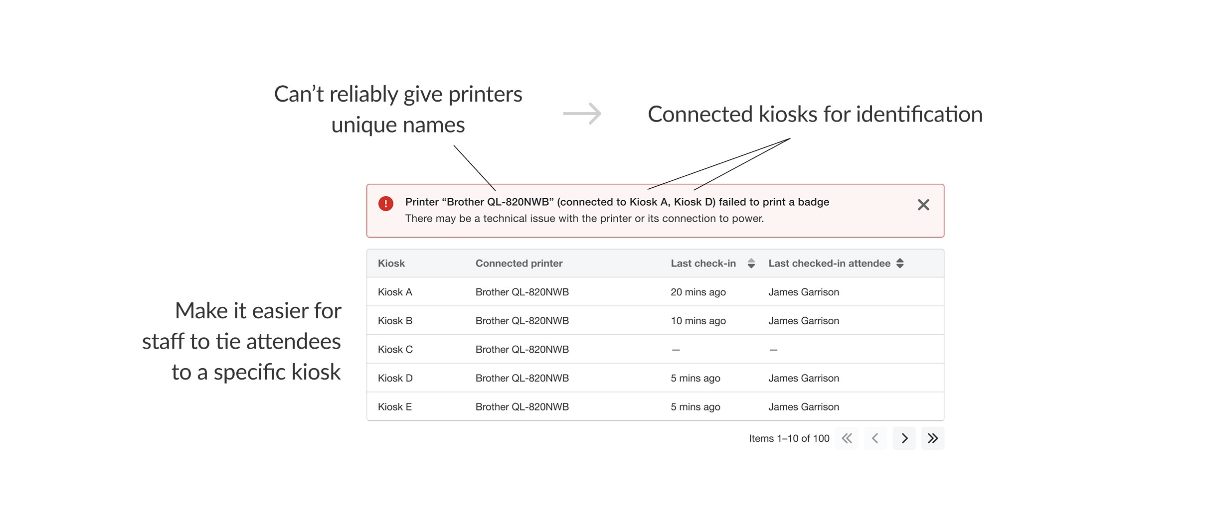 We realized it’d be difficult to describe issues if they came from multiple iPad Kiosks at the same time…users needed context.