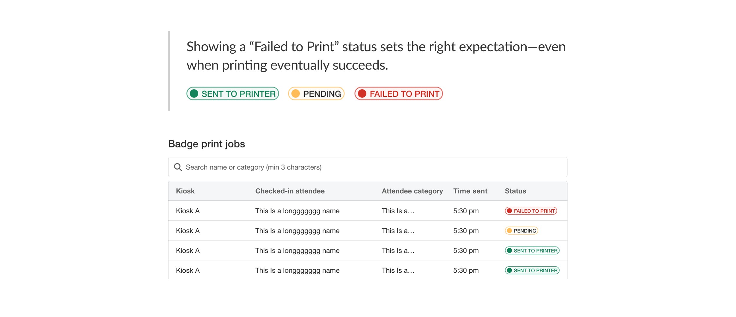 At check-in, stopping to admire a beautifully designed badge matters a lot less than making sure your name isn’t spelled wrong.