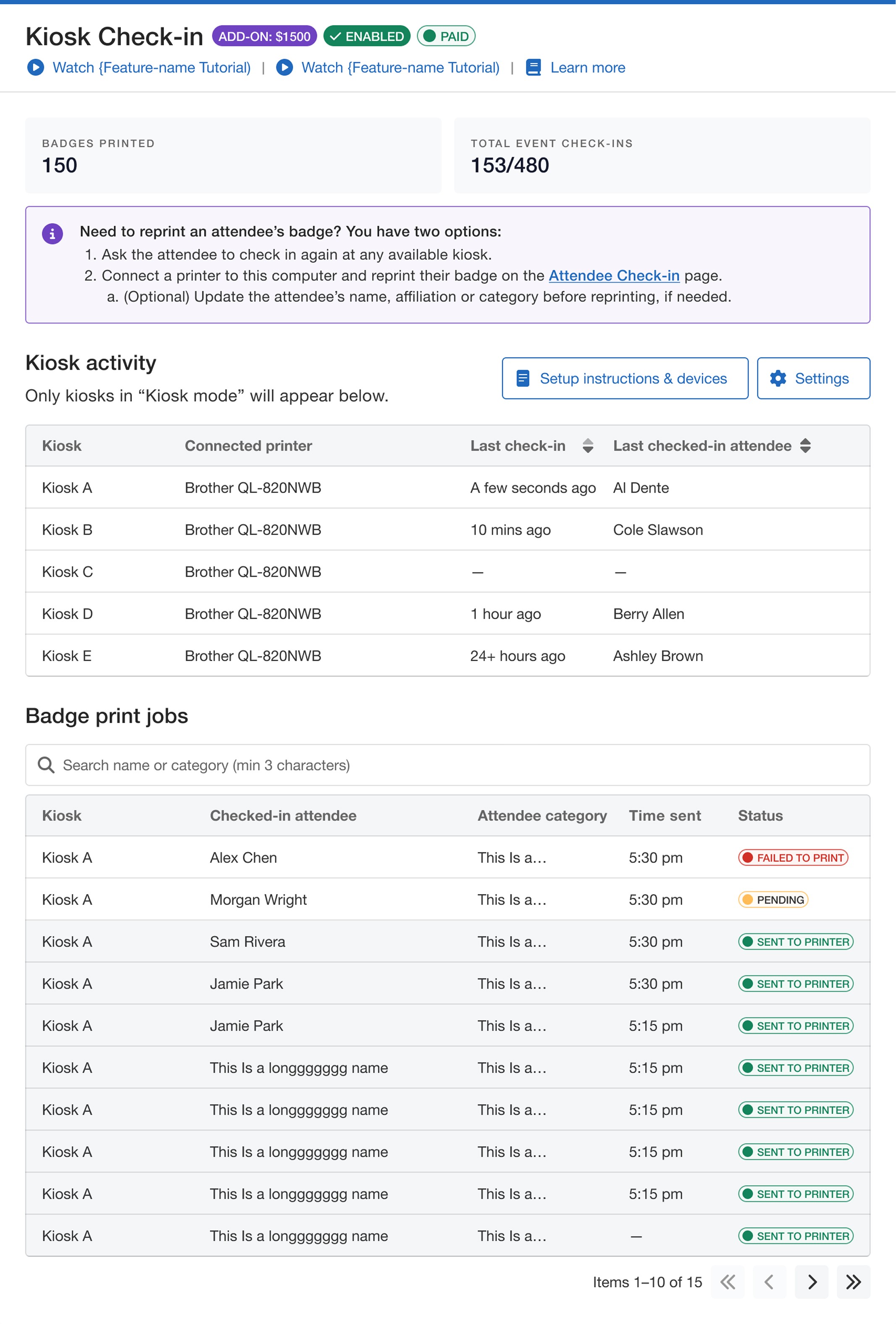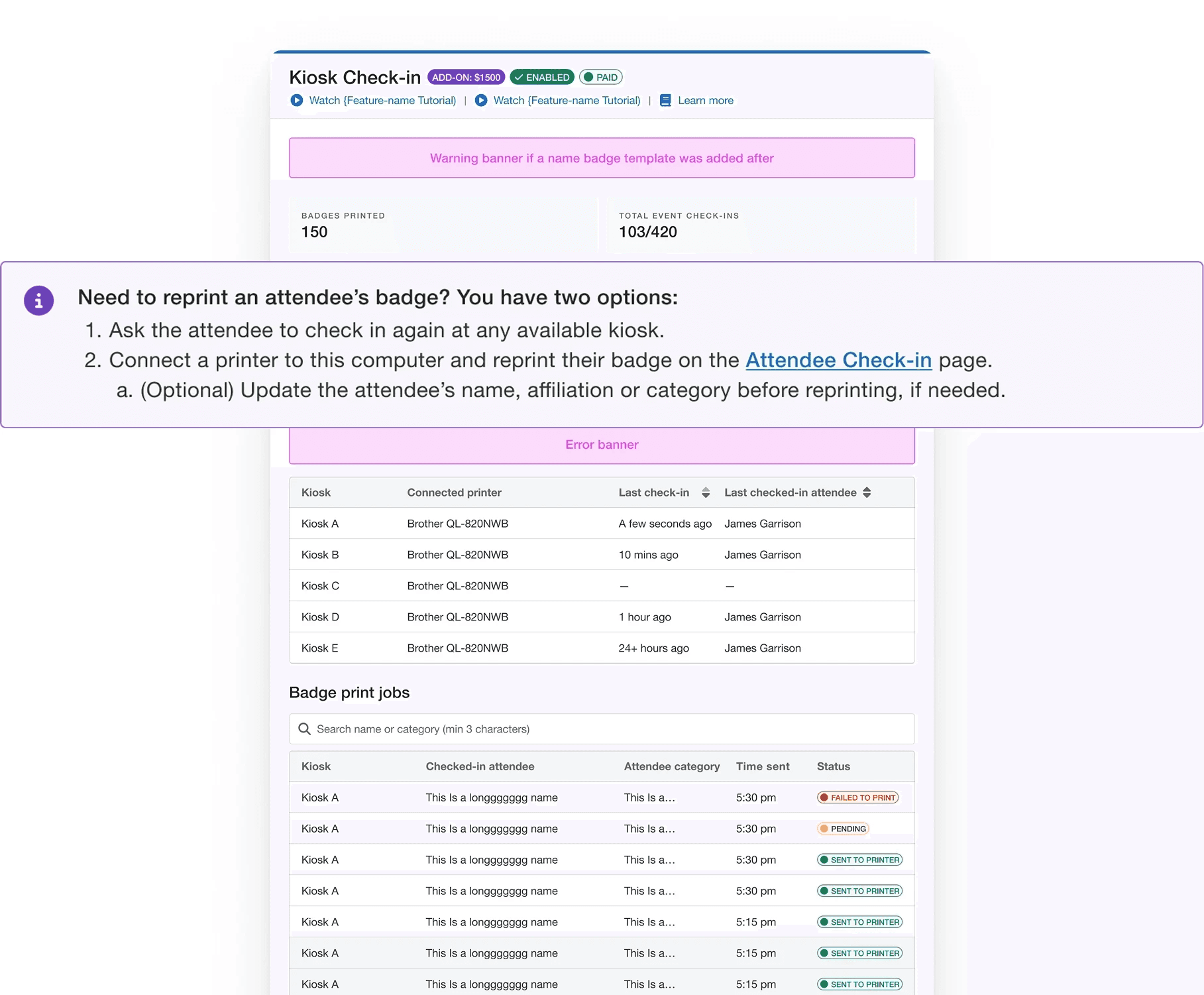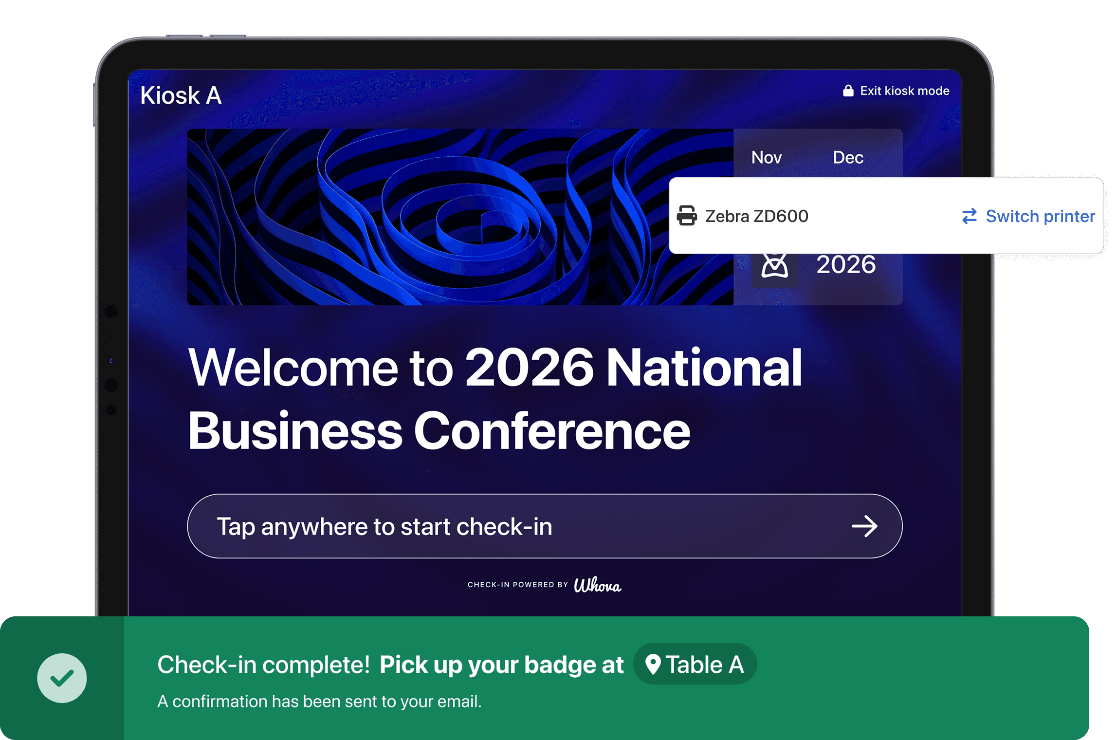 Empower organizers with a lean check-in + badge printing setup built to impress crowds of any size.