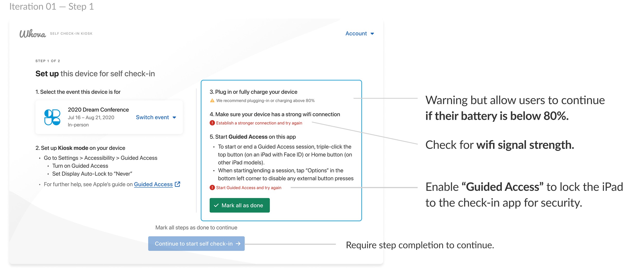 I added real-time checks for common setup issues, helping catch and fix problems to help check-in go smoother.