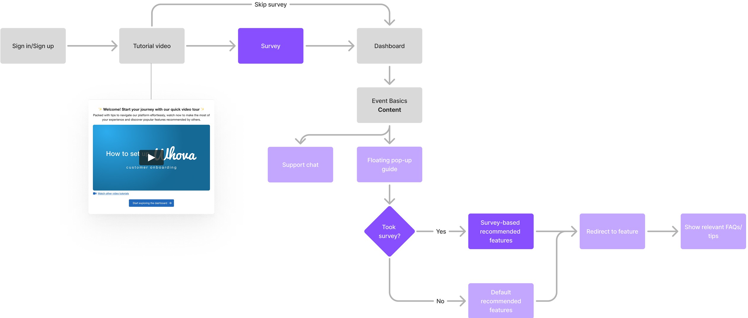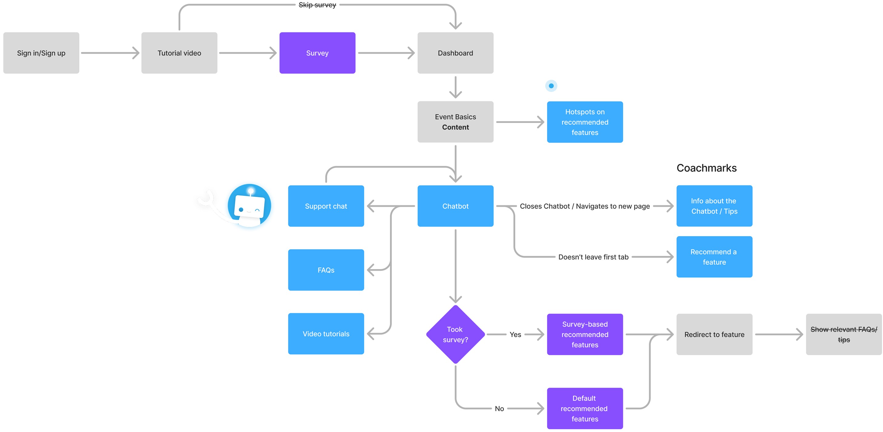 I started by revisiting the user flow to identify engagement points