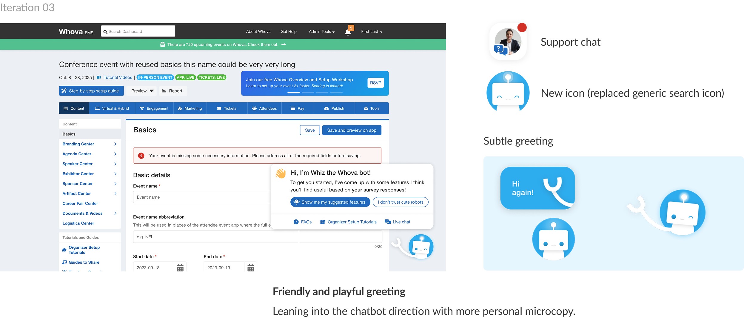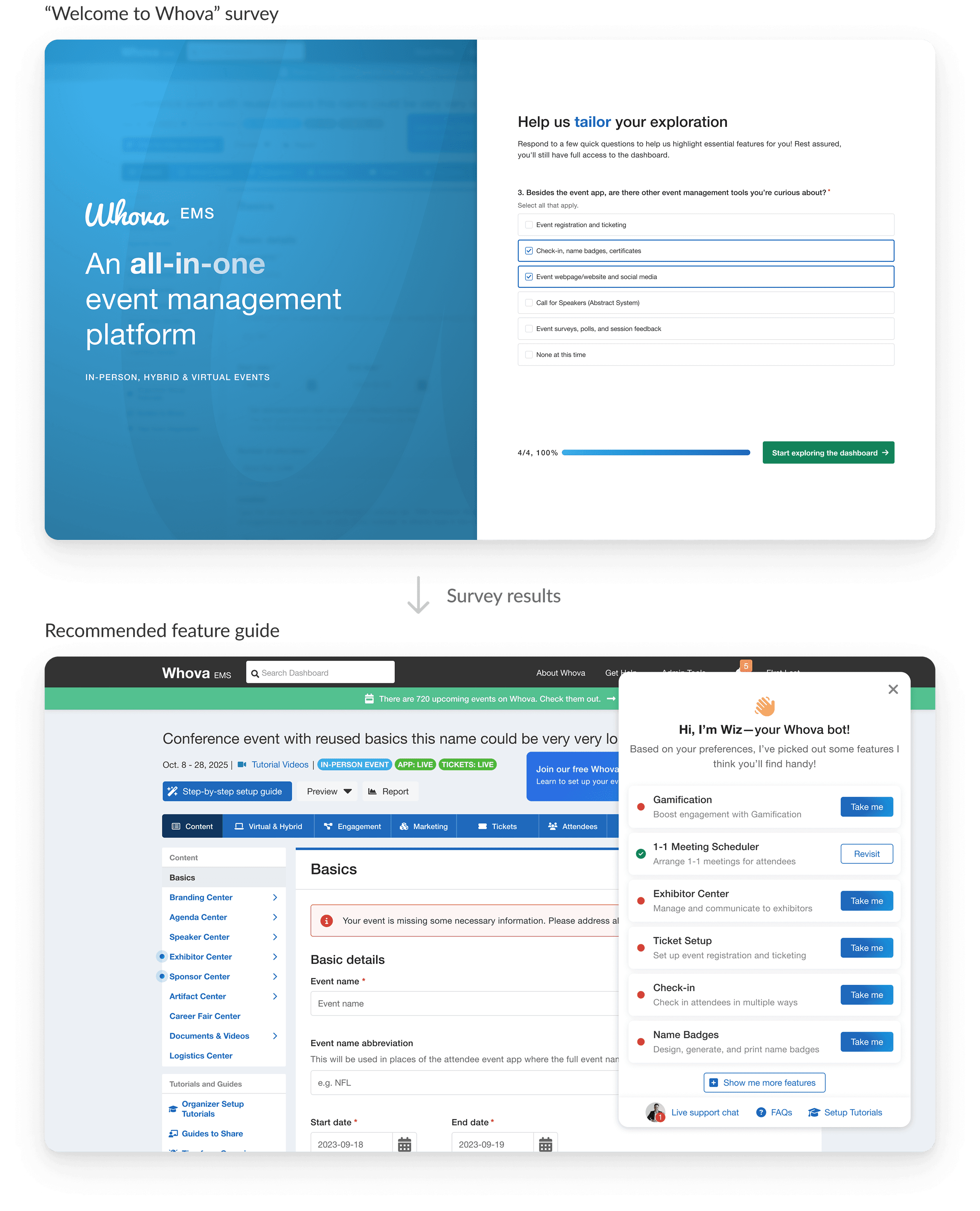 Learning more about relevant add-ons (opportunity for cross-selling), Whova Academy, etc.