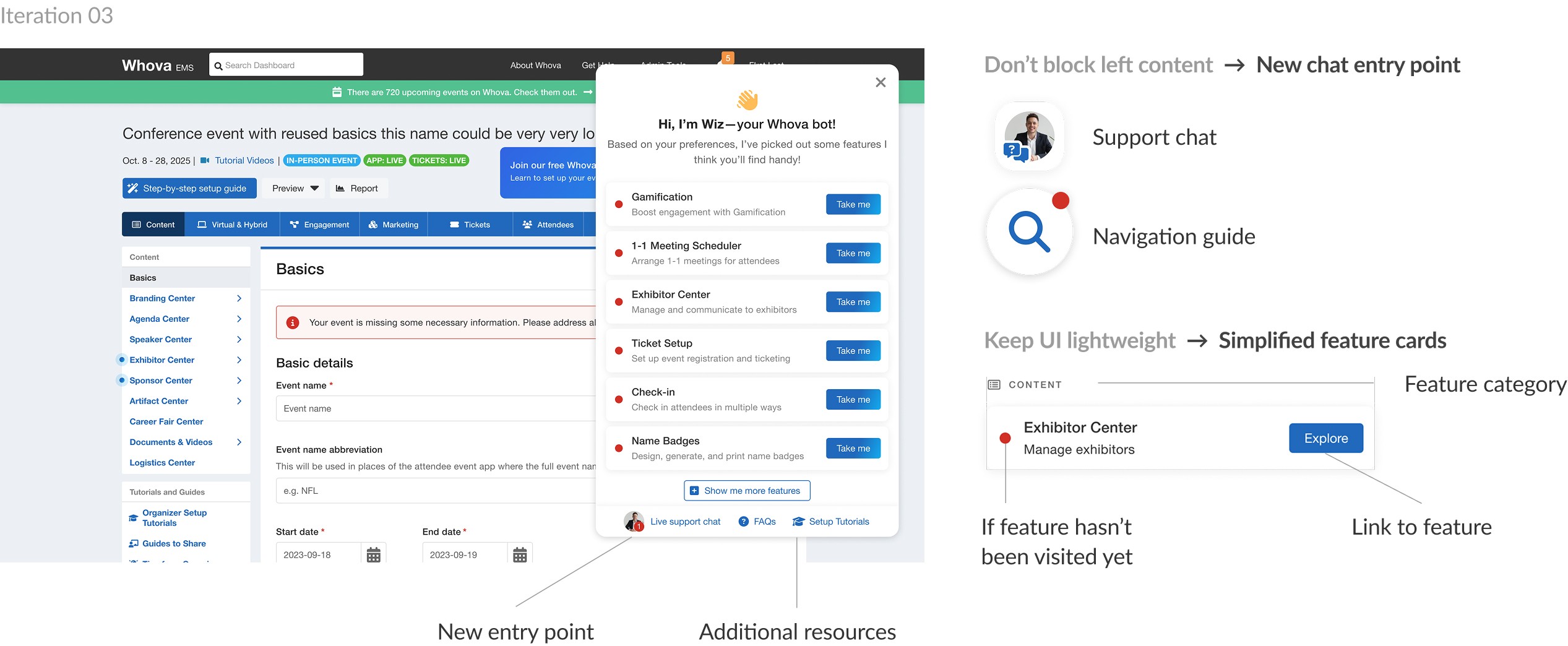 We needed to break down Whova's complex interface
