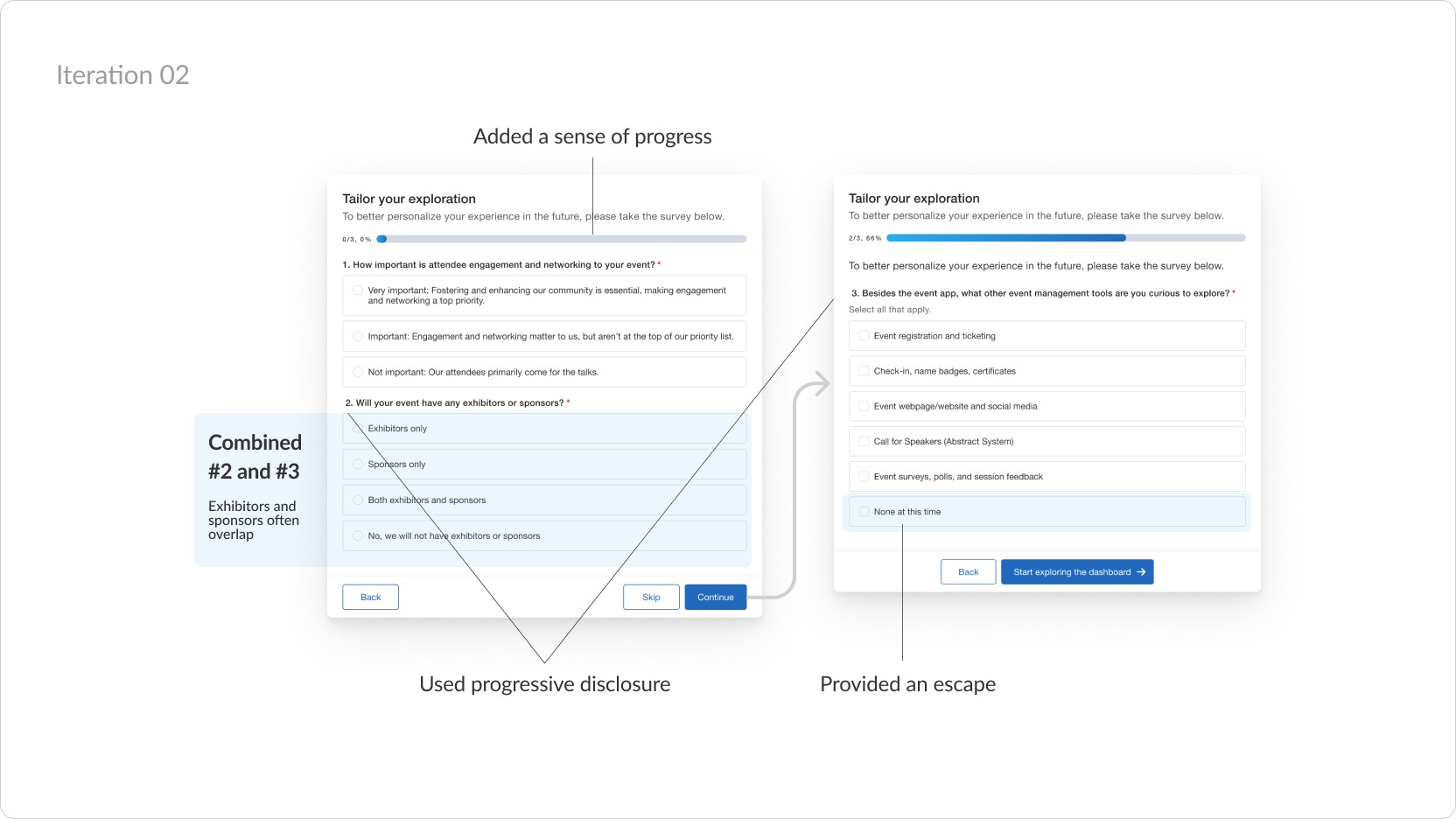 User testing the survey showed that tricks only led to frustration. Once users decided they didn’t want to engage, a design trick wouldn’t change that—and it risked drop off instead. It taught me to design for willingness, not coercion, to make it so that users wanted to engage.